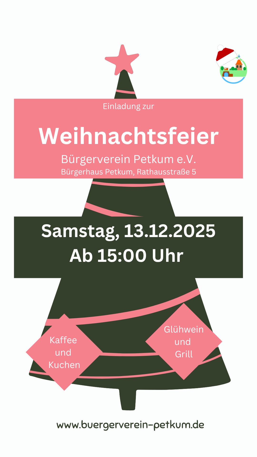 Am 13.12.2025 findet unsere alljährliche Weihnachtsfeier statt. Alle sind herzlich eingeladen.